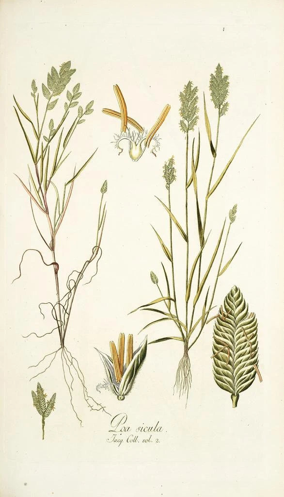 Nikolaus Joseph Freiherr von Jacquin, botaniker og kunstner fra det 18. århundrede, formåede at forene videnskab og kunst i sine værker. Uddannet ved Wiens universitet, blev han påvirket af tidens opdagelser, især botaniske ekspeditioner. Hans illustrationer, som den af Poa sicula, vidner om hans engagement i at dokumentere floraen med videnskabelig præcision, samtidig med at de bevarer en raffineret æstetik. Hans arbejde markerede en tid, hvor kunst og videnskab krydsede hinanden, og bidrog til fremskridt inden for botanisk viden, samtidig med at det berigede det kunstneriske arv.