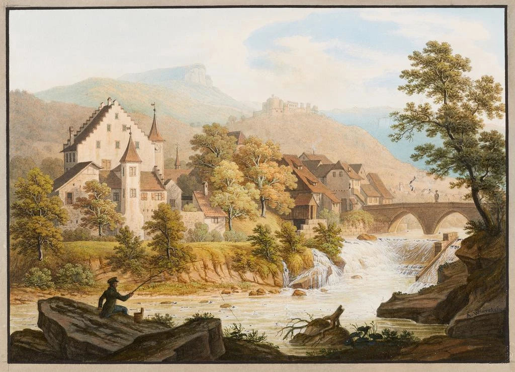 Anton Winterlin, schweizisk maler fra det 19. århundrede, er kendt for sine poesi- og lysfyldte landskaber. Påvirket af den romantiske bevægelse har han fokuseret på at fange naturens skønhed, ofte med fokus på landlige scener og alpine panoramer. Hans karriere strakte sig over flere årtier, hvor han formåede at udvikle sig, mens han forblev tro mod sin karakteristiske stil. Winterlin var også en aktiv del af den schweiziske kunstscene og bidrog til anerkendelsen af landskabskunsten i sit land. Hans værk, hvor Pont de Dornach er et emblematisk eksempel, vidner om hans kærlighed til naturen og hans ønske om at dele den med verden.