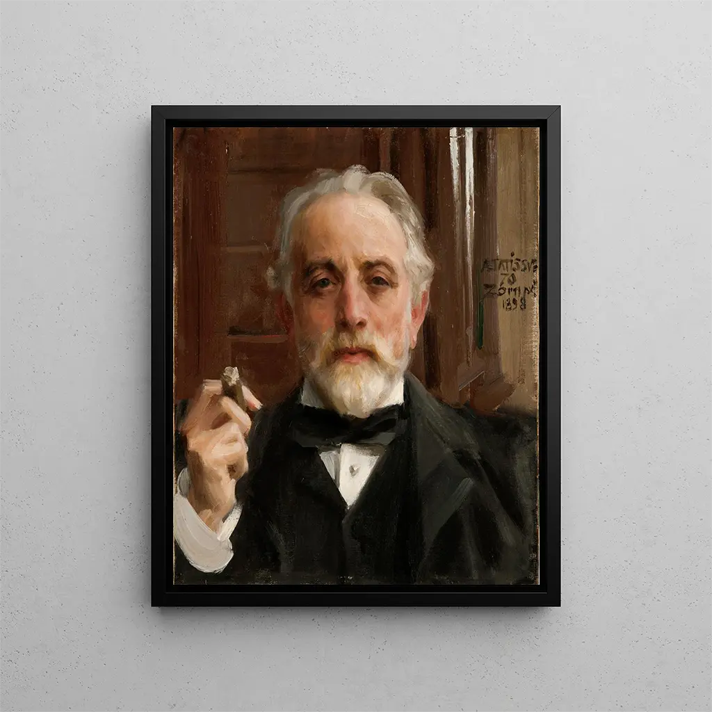 L'œuvre "Pontus Fürstenberg - Anders Zorn" præsenterer sig som et åbent vindue til en kunstnerisk verden fra en svunden tid, samtidig med at den bevarer en tidløs relevans. Denne fremstilling, der indfanger essensen af en ikonisk figur inden for kunstverdenen, fører os ind i en labyrint af en blomstrende kreativitet. Anders Zorn, den berømte svenske maler, formår at tilføre sine portrætter en psykologisk dybde og en menneskelig varme, der overskrider det simple at afbilde et ansigt. Ved at betragte dette værk inviteres seeren til at udforske subtiliteterne i lys, skygger og farver, hvilket afslører de følelser, der bor i kunstnerens motiver.