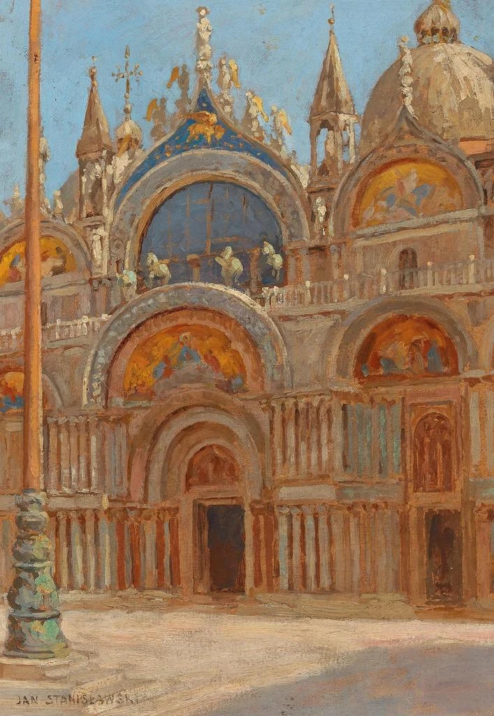 Jan Stanisławski, en central skikkelse i det polske landskab i begyndelsen af det 20. århundrede, formåede at forene tradition og modernitet i sit værk. Påvirket af impressionismen og post-impressionismen udviklede han en unik stil, der fremhæver lys og farve. Hans rejser gennem Europa, især i Italien, berigede hans visuelle repertoire og nærede hans passion for arkitektur. Portalen af San Marco indskriver sig i denne søgen efter skønhed og sandhed og vidner om arkitekturens vigtighed i hans arbejde. Stanisławski efterlader sig en varig arv, der inspirerer mange kunstnere til at udforske forholdet mellem mennesket og dets omgivelser.