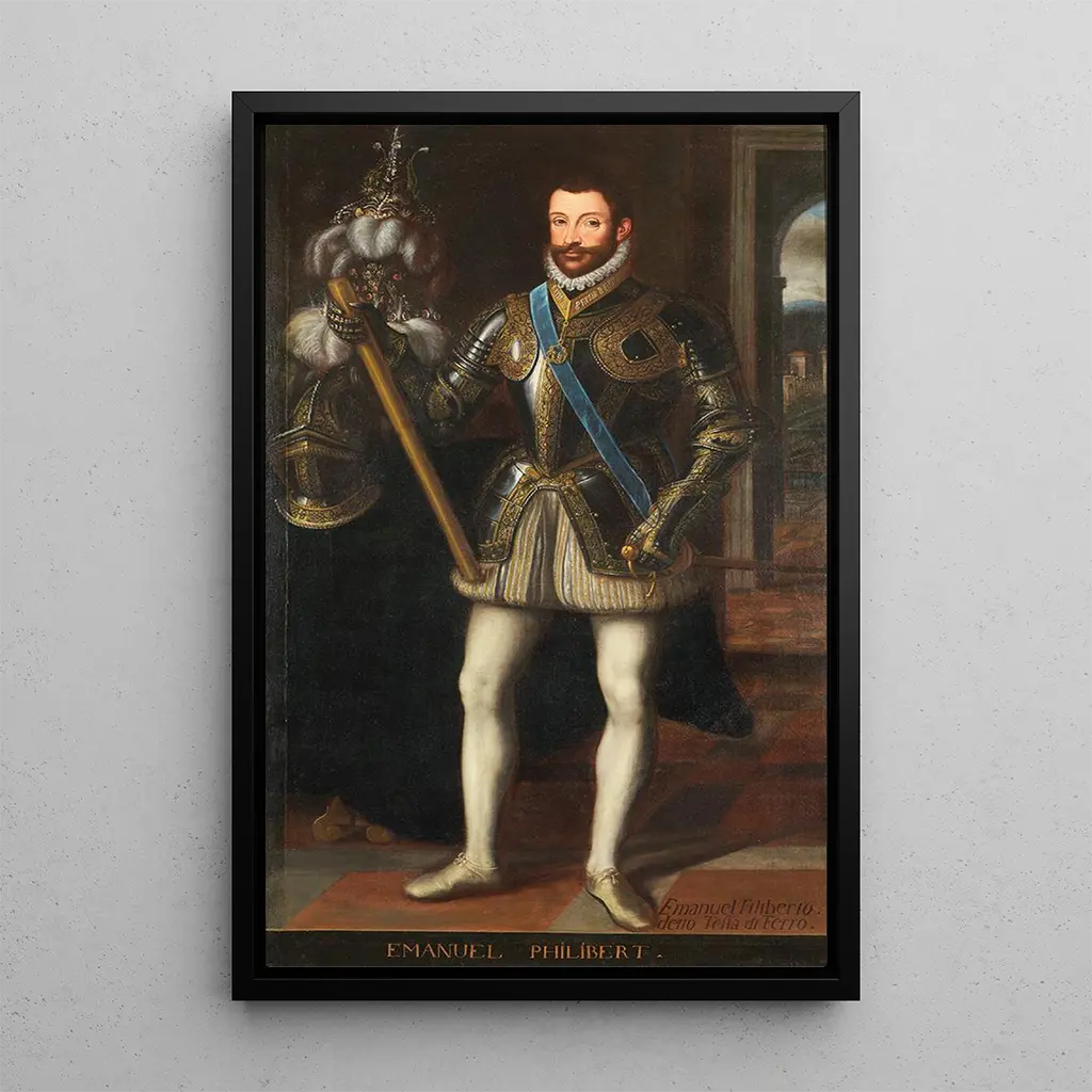 "Portrait af Emanuele Filiberto" er et fængslende kunsttryk, der skildrer Savoia-prinsen med bemærkelsesværdig intensitet. De rige og dybdegående farver, fra livlige røde til glitrende guld, skaber en atmosfære, der er både majestætisk og intim. Teknikken med oljemaling, med sine omhyggelige detaljer, giver mulighed for at gengive teksturerne i tøjet og ansigtets udtryk. Dette kunsttryk inviterer betragteren til at dykke ned i den italienske renæssance, hvor adel var både et emne for beundring og mystik.