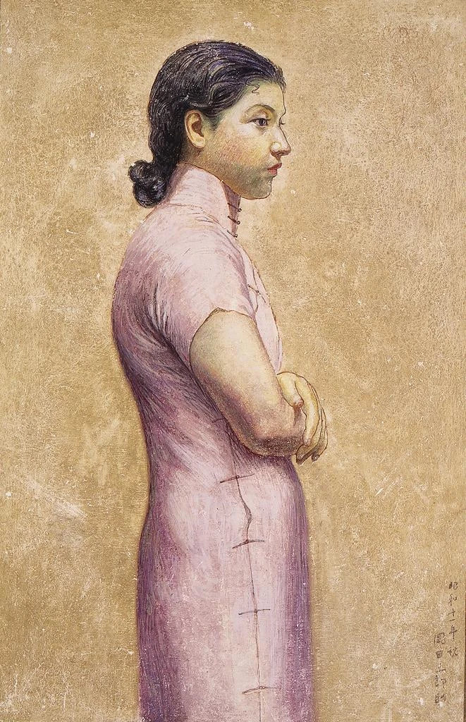 Kunsttrykket "Portrait d'une femme" af Okada Saburōsuke er et fængslende værk, der fremkalder ynde og elegance. Sammensætningen skiller sig ud med bløde og harmoniske farver, hvor pasteltone subtilt blander sig for at skabe en delikat atmosfære. Kunstnerens teknik, der kombinerer præcision og flydendehed, gør det muligt at fange ikke kun ansigtets træk, men også selve essensen af kvindelighed. Hvert detalje, fra blikket til håret, er omhyggeligt udarbejdet og inviterer betragteren til at dykke ned i en verden af raffinement og eftertanke.
