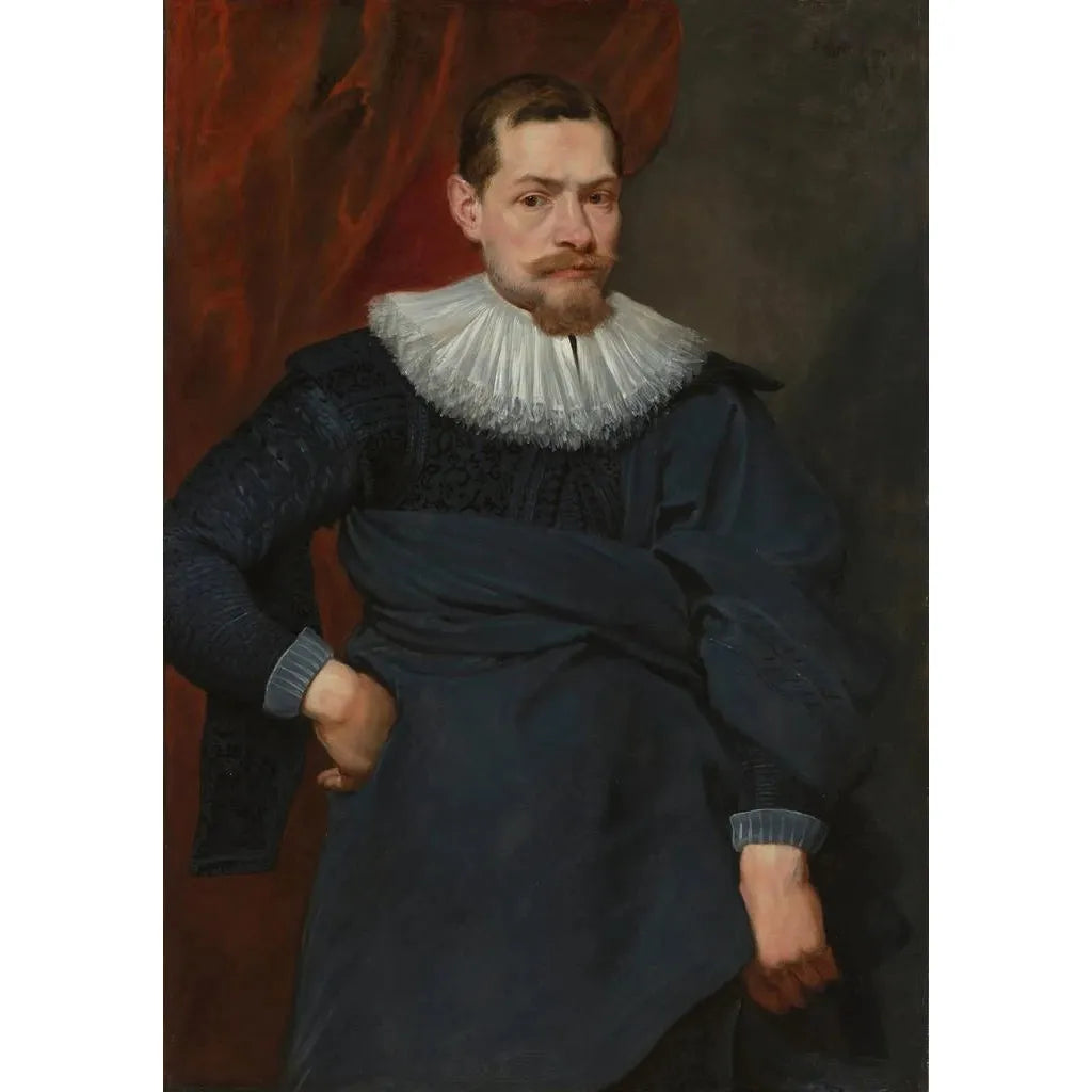 Antoine van Dyck, elev af Rubens, er en af de største portrætmalere fra det 17. århundrede. Han var primært aktiv i Flandern og England og formåede at forene de flamske maleritraditioner med en mere elegant og raffineret stil. Hans evne til at fange personligheden hos sine motiver har gjort ham til en eftertragtet kunstner blandt den europæiske adel. Kunsttrykket "Portrait af en mand" illustrerer perfekt hans talent og vidner om vigtigheden af hans værk i udviklingen af barokportrættet. Van Dyck formåede at sætte en ny standard for fremstillingen af aristokratiske figurer og påvirkede mange kommende kunstnere.