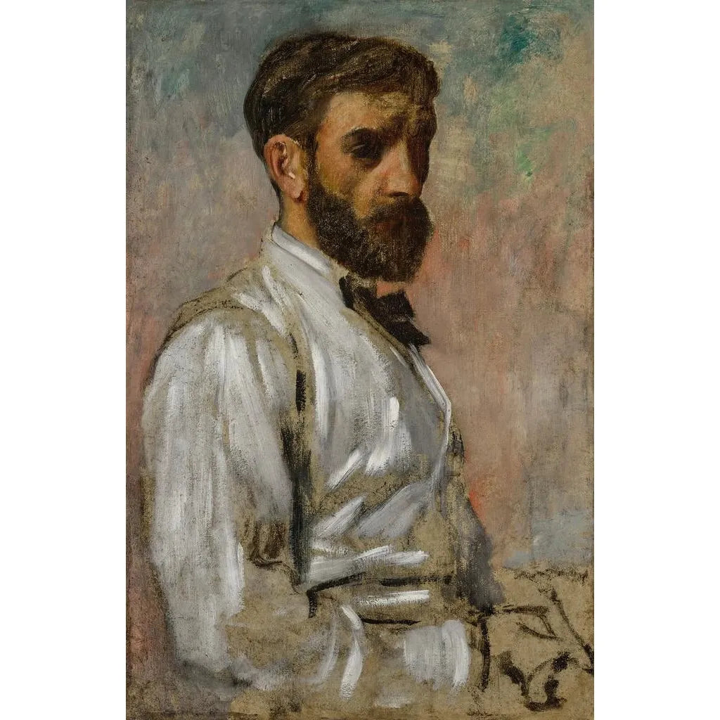 Kunsttrykket af "Portrait af kunstner Léon Bonnat" giver et fascinerende indblik i intimitet og psykologisk dybde. I dette værk fanger Degas Bonnats tænksomme blik, hvilket afslører en kompleks personlighed. De mørke farver og de subtile lysnuancer fremhæver ansigtets træk, mens kunstnerens afslappede holdning antyder en indre refleksion. Degas' teknik, der kombinerer realisme og impressionisme, skaber en atmosfære, der er både personlig og universel, og inviterer betragteren til at reflektere over selve kunstens natur.