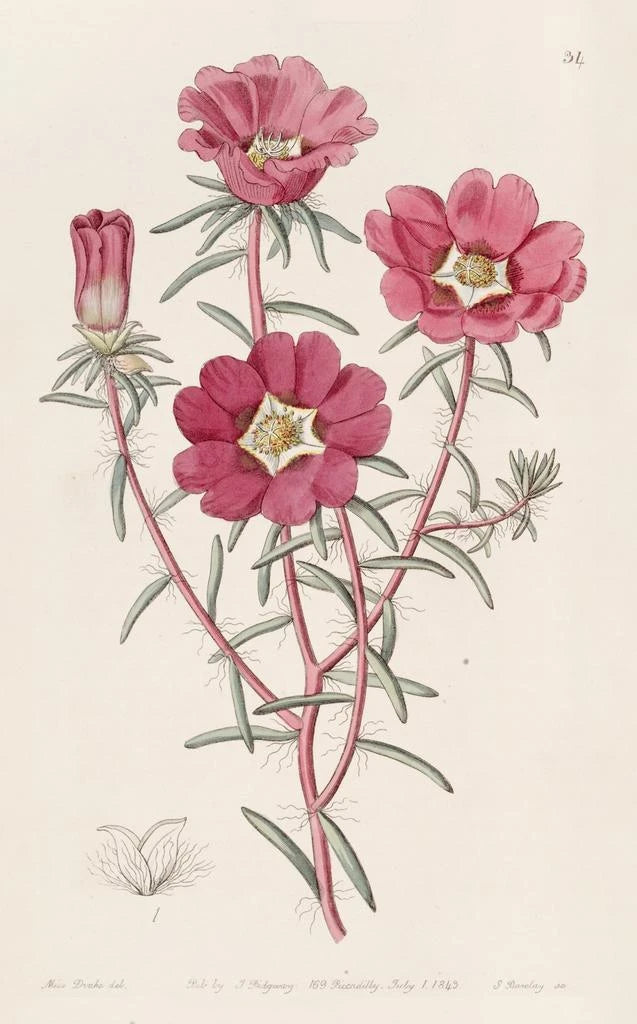 Maleri Portulaca splendide - Sydenham Edwards | Kunsttryk