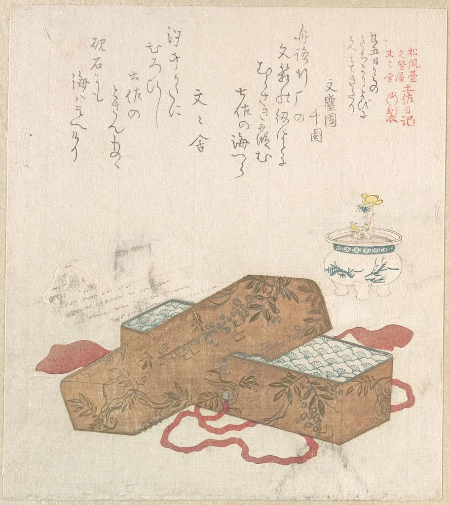 Brevkasse med brev og blomsterpotte - Kubo Shunman