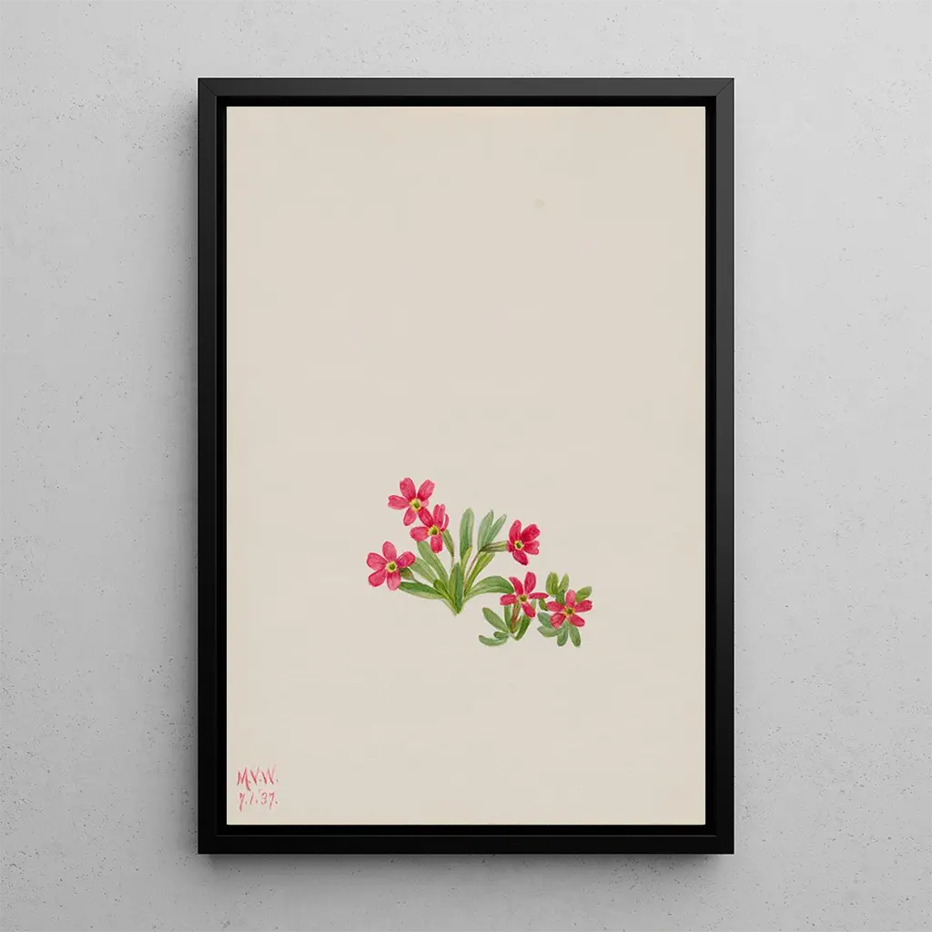 Kunsttrykket af Primevère Primula angustifolia tager os med ind i en verden af blidhed og lethed. De fine kronblade, i pastelnuancer, fremkalder forårets friskhed. Hvert eneste detalje er omhyggeligt gengivet, fra bladnervene til de subtile nuancer i blomsterne. Akvarelteknikken, anvendt af Mary Vaux Walcott, giver dette værk en næsten æterisk atmosfære, som om blomsterne er klar til at lette med vinden. Dette lærred inviterer til eftertanke, til at opdage naturens vidundere, samtidig med at det fejrer blomstens flygtige skønhed.
