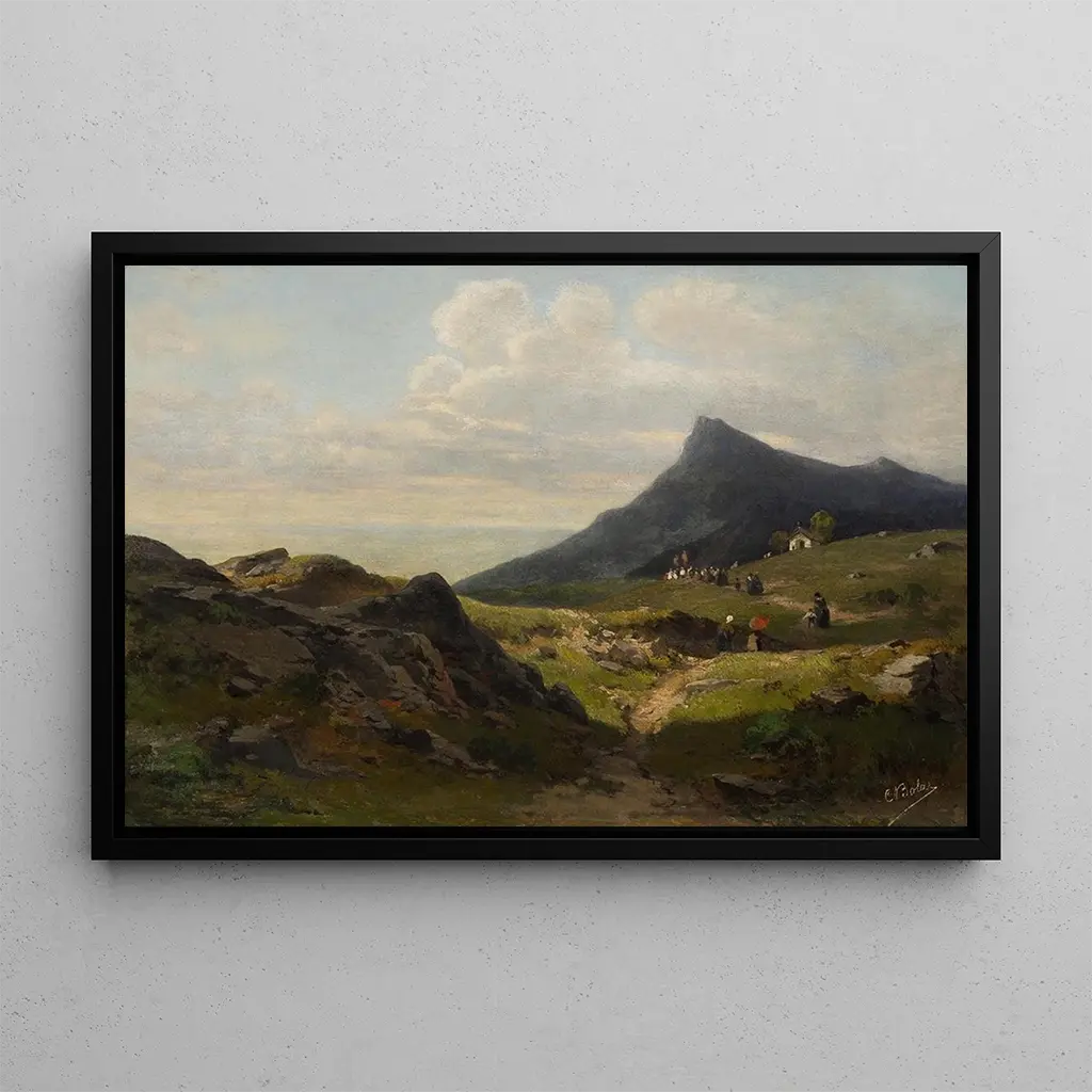 Den kunsttryk af Procession af Carl Bolze fanger et livligt øjeblik af fællesskabets liv. Personerne, klædt i traditionelle kostumer, bevæger sig med en rituel elegance, mens de levende farver og de omhyggelige detaljer fremkalder en festlig atmosfære. Bolzes teknik, der blander realisme og impressionistiske strejf, skaber en fængslende visuel dynamik. Kunstværket inviterer seeren til at dykke ned i en kollektiv fejring, hvor hvert ansigt fortæller en historie om hengivenhed og glæde.
