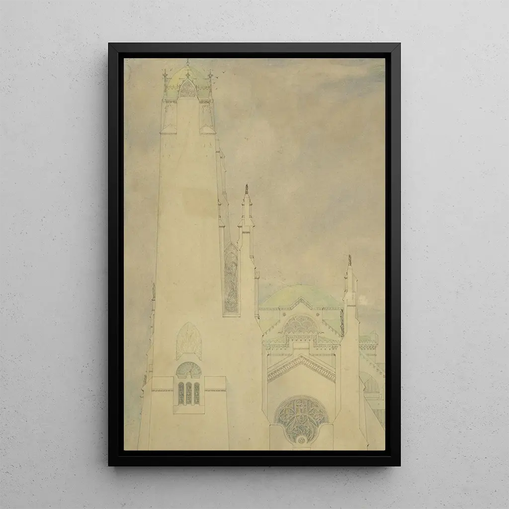Kunsttrykket af "Projekt til en kirke" er en bemærkelsesværdig tilføjelse til ethvert opholds- eller arbejdsrum. Uanset om det er i et kontor, et mødelokale eller en stue, bringer dette lærred en åndelig og kunstnerisk dimension til din indretning. Dets trykkvalitet sikrer en enestående trofasthed mod detaljerne, hvilket gør det muligt fuldt ud at værdsætte Bauers vision. Ved at vælge dette værk giver du dit hjem et strejf af elegance og refleksion, samtidig med at du fejrer harmonien mellem kunst og arkitektur.