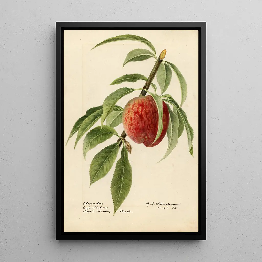 Kunsttrykket af tableauet Prunus persica Alexander er et ideelt valg til at forskønne dit hjem. Uanset om det er i stuen, på kontoret eller i soveværelset, tilføjer dette lærred et strejf af friskhed og poesi. Dets trykkvalitet garanterer en trofast gengivelse af de originale farver, hvilket gør det muligt at nyde dets æstetiske appel fuldt ud. Ved at vælge dette værk giver du dit rum en beroligende og inspirerende atmosfære, samtidig med at du fejrer naturens tidløse skønhed.