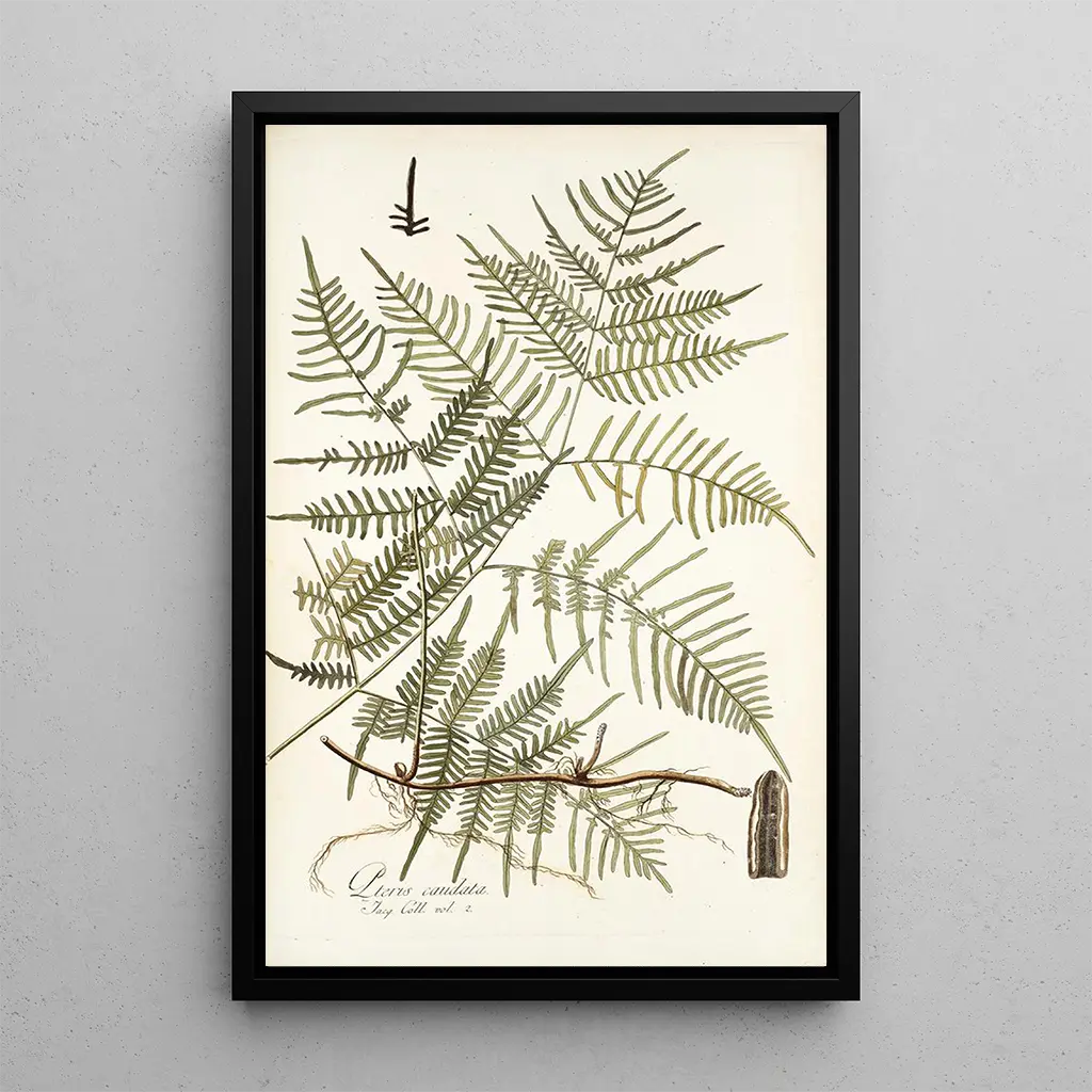 Kunsttrykket af Pteris caudata er et ideelt valg til at forskønne forskellige opholdsrum, hvad enten det er i en stue, et kontor eller et soveværelse. Dets beroligende farvepalette og det delikate motiv tilføjer et strejf af natur og friskhed til din indretning. Kvaliteten af kunsttrykket sikrer en trofast gengivelse af det originale værk, hvilket giver mulighed for at nyde alle detaljer og skønheden i dette lærred. Med sin ubestridelige æstetiske appel integreres dette værk harmonisk i enhver indretning og tilføjer et strejf af sofistikation og ro til dit miljø.