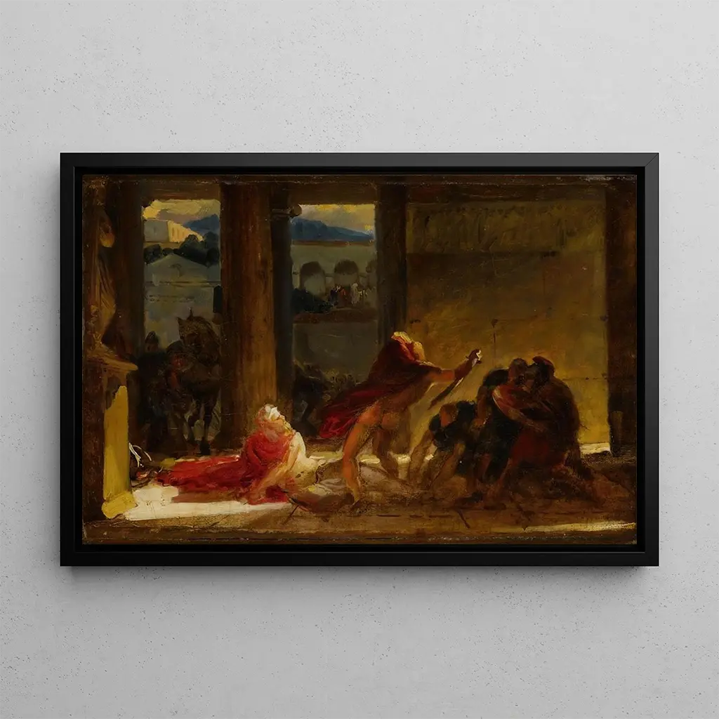 At vælge en reproduktion af "La mort de Pyrrhus" til dit hjem er at vælge et centralt stykke, der vækker beundring. Uanset om det er i en stue, et kontor eller et soveværelse, vil dette maleri tilføre elegance og dybde til din indretning. Dets reproduktionskvalitet sikrer en trofast gengivelse af de originale detaljer, hvilket gør det muligt at føle den følelsesmæssige kraft i værket. Med sin ubestridelige æstetiske appel bliver dette lærred ikke kun et dekorativt element, men også et fængslende samtaleemne, der beriger dit opholdsrum med en tidløs historie.