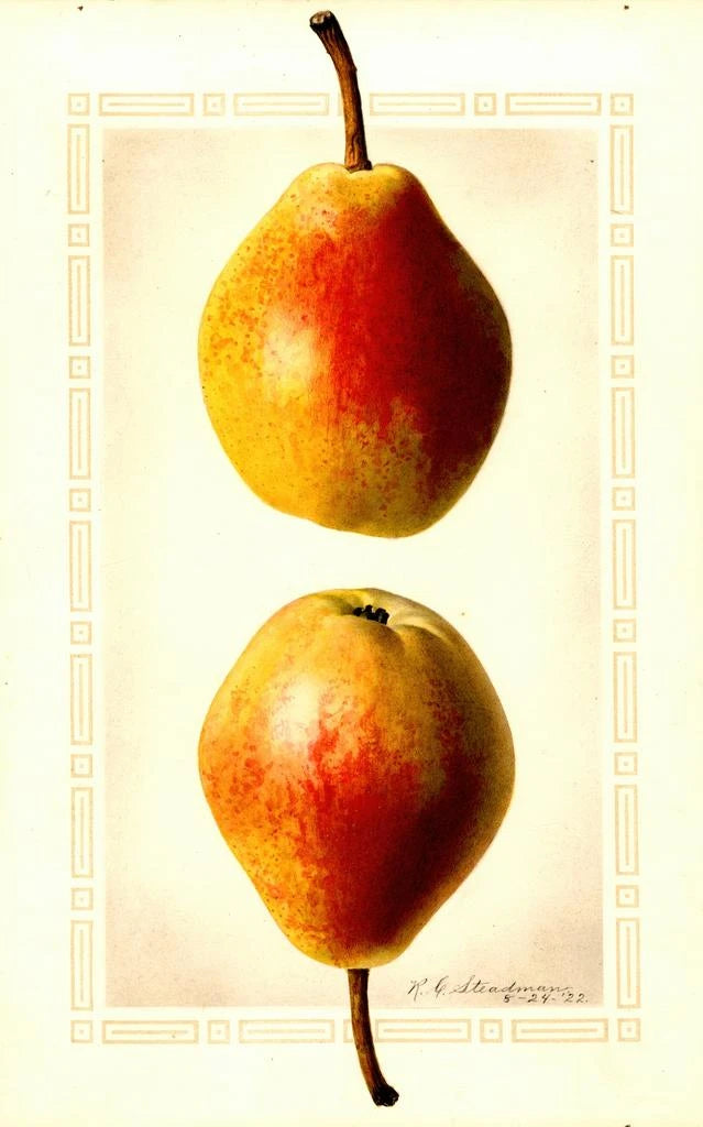 Royal Charles Steadman, aktiv i begyndelsen af det 20. århundrede, er anerkendt for sit bidrag til botanisk maleri. Hans stil, påvirket af naturalistiske traditioner, skiller sig ud ved en omhyggelig opmærksomhed på detaljer og en palette af levende farver. Steadman har formået at fange essensen af frugterne og blomsterne, hvilket hylder naturens skønhed. Med værker som Pyrus communis Clapps Favorite har han etableret en forbindelse mellem kunst og videnskab, hvilket giver kunstelskere mulighed for at værdsætte biodiversitetens rigdom gennem hans unikke blik.