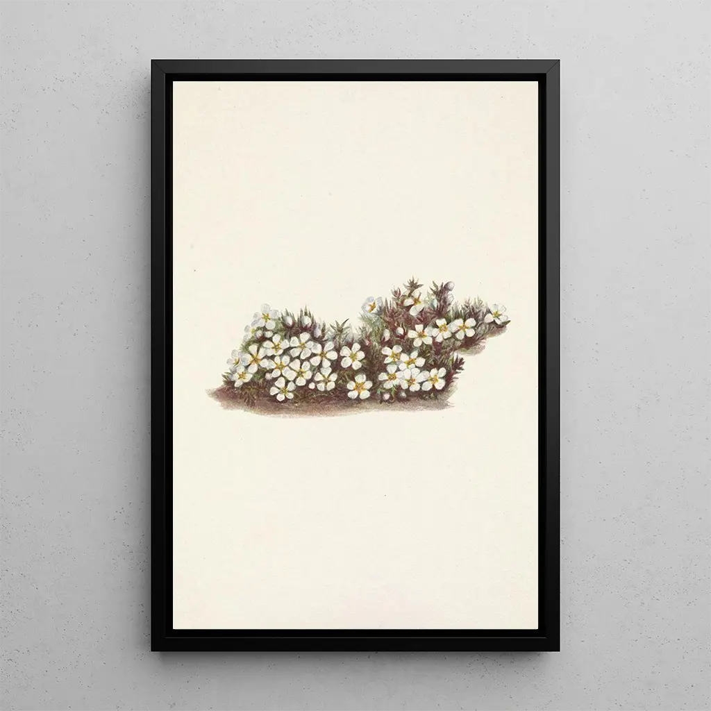 Kunsttrykket af Pyxidanthera barbulata tager os med ind i en verden af finesse og ro. Dette lærred, rigt på detaljer, fremhæver den ikoniske plante med en palette af bløde farver, der spænder fra sart grøn til nuancer af strålende hvid. Den akvarelteknik, som Mary Vaux Walcott anvender, giver værket en let svævende kvalitet, næsten æterisk. Atmosfæren, der udspringer af dette værk, inviterer til eftertanke og giver mulighed for at værdsætte de fine streger og teksturers finesse. Hvert petal synes at få liv, og hele kompositionen fremkalder en perfekt harmoni mellem natur og kunst.