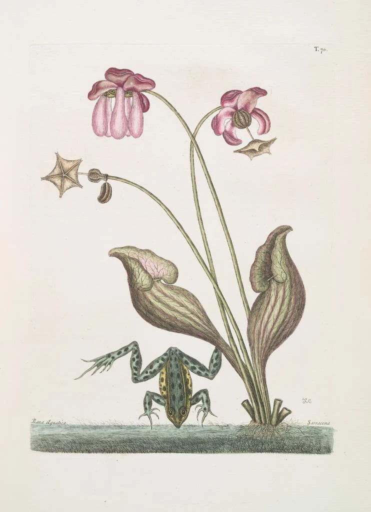 Maleri Rana Aquatica Den Vandspringer Sarracena - Mark Catesby