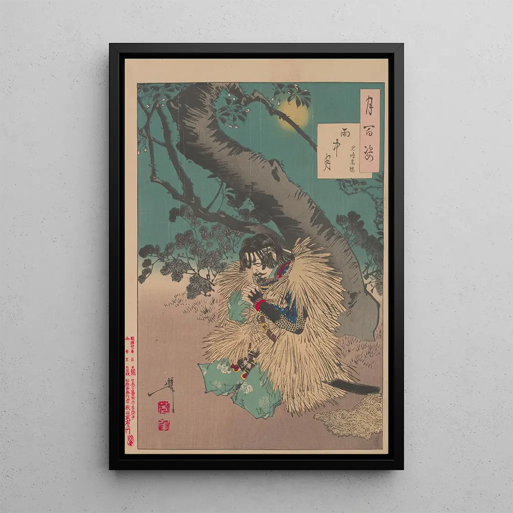Tsukioka Yoshitoshi, født i 1839, er en af de sidste store mestre af ukiyo-e, en japansk kunstbevægelse, der blomstrede fra det 17. til det 19. århundrede. Påvirket af de sociale og politiske omvæltninger i sin tid, formåede han at forene tradition og innovation og skabte værker, der fanger livets flygtige skønhed. Hans stil, præget af dristige kompositioner og levende farver, har sat et varigt præg på japansk kunst. Yoshitoshi blev også inspireret af litteratur og folklore og integrerede disse elementer i sine værker for at berige den visuelle fortælling. Hans arv består, hvilket gør ham til en uundværlig figur i japansk kunst.