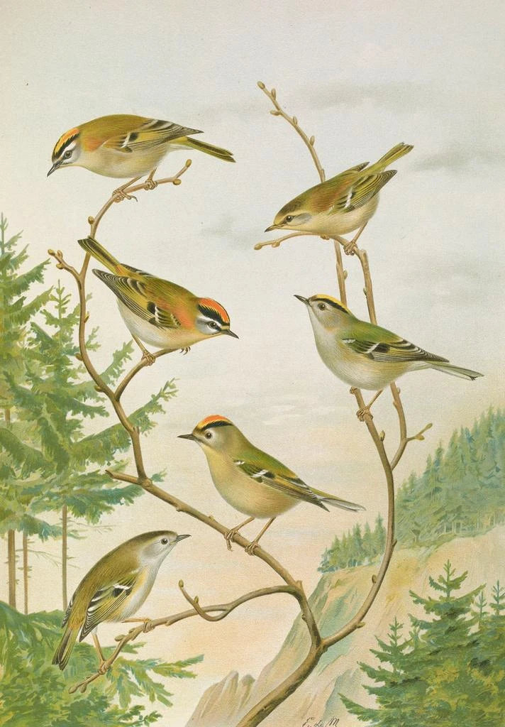Maleri Regulus ignicapillus Regulus regulus - Johann Friedrich Naumann