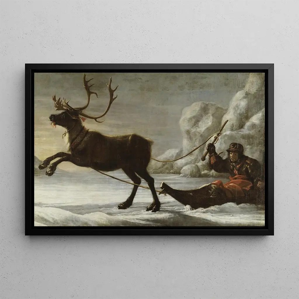 Dette kunsttryk af maleriet Ren med en slæde er et dekorativt stykke, der passer perfekt ind i forskellige rum, hvad enten det er i en stue, et kontor eller et soveværelse. Dets trykkvalitet og trofasthed mod detaljerne i originalen gør det til et ideelt valg for kunstelskere. Det æstetiske tilsnit af dette lærred tilføjer elegance og varme til dit hjem, samtidig med at det inviterer til drømme og opdagelse af de nordiske traditioner. Forkæl dig selv med dette værk for at berige din indretning og skabe samtaler om kunst og kultur.