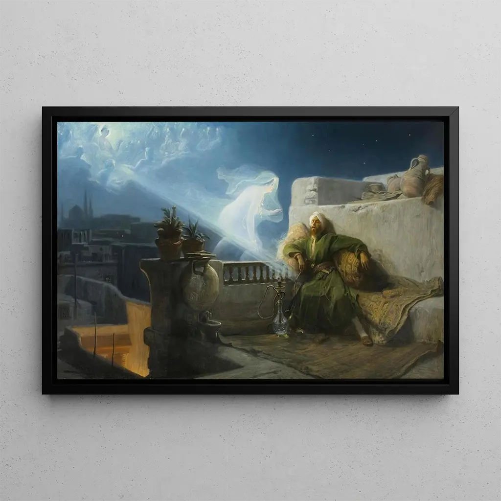 I værket Rêve d'Orient tager Jean Lecomte du Nouÿ os med til en verden fyldt med mysterium og sensualitet. Den delikate komposition af dette kunsttryk fremkalder en intim scene, hvor en kvinde, klædt i rige stoffer, synes at være dybt fortabt i sine tanker. De varme, gyldne farver, blandet med nuancer af blå, skaber en atmosfære, der både er drømmende og fortryllende. Kunstnerens teknik, der kombinerer realisme med impressionistiske strejf, giver liv til hver eneste detalje, fra stoffernes mønstre til lysreflekser på huden. Dette kunsttryk er en ægte invitation til fordybelse, hvor hvert blik afslører en ny facet af den orientalske fantasi.