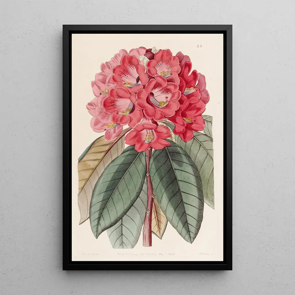 Kunsttrykket af Rhododendron Rollissonii er et dekorativt valg, der vil tilføre farve og friskhed til dit hjem. Uanset om det er i stuen, på kontoret eller i soveværelset, integreres dette billede harmonisk i forskellige dekorationsstile. Dets trykkvalitet og trofasthed over for originalens farver sikrer en enestående visuel gengivelse. Ved at vælge dette lærred giver du dit rum en levende og inspirerende atmosfære, samtidig med at du fejrer blomsterens skønhed i din hverdag.