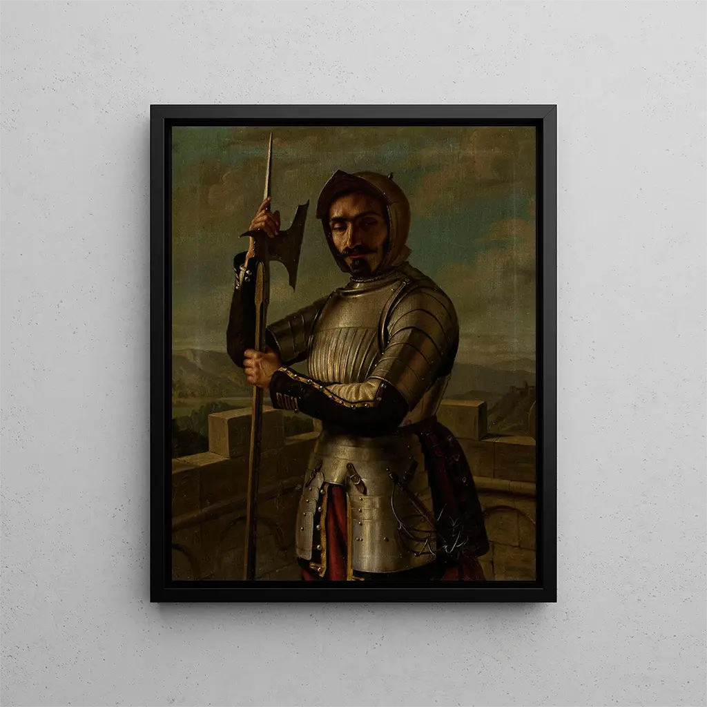 Kunsttryk Chevalier i rustning - Aleksander Lesser – Indledende fascinerende Kunsttrykket Chevalier i rustning - Aleksander Lesser er et ikonisk værk, der fordyber seeren i det fascinerende univers fra det 19. århundrede. Dette maleri, skabt af den polske maler Aleksander Lesser, skildrer en ridder i rustning, symbol på mod og adel. Scenen, rig på detaljer og følelser, fanger øjeblikkeligt opmærksomheden og inviterer til en dybere udforskning af temaerne ridderlighed og heltemod. Lesser formår gennem dette værk ikke blot at formidle den fysiske fremtoning af karakteren, men også ånden fra den middelalderlige epoke, han portrætterer. Stil og særpræg ved værket Lesser’s stil er kendetegnet ved en slående realisme, kombineret med en romantisk følsomhed, der karakteriserer den kunstneriske bevægelse i hans tid. I "Chevalier i rustning" er hvert element omhyggeligt udført, fra de metalliske reflekser i rustningen til teksturerne i stoffet, der ledsager den. Kunstneren bruger en rig farvepalette, hvor nuancer af grå og sølv i rustningen står i kontrast til de varme nuancer i landskabet i baggrunden. Dette chromatiske valg fremhæver ridderens majestæt og skaber samtidig en atmosfære af mystik. Kompositionen er afbalanceret, med en belysning, der fremhæver hovedpersonens ansigt og fanger et refleksionsøjeblik, der synes ophængt i tiden. Selve rustningen er ikke blot et tilbehør, men en ægte karakter, der fortæller en historie – om en glorværdig fortid og en dydig modighed. Kunstneren og hans indflydelse Aleksander Lesser, født i 1814 i Warszawa, er anerkendt for sine betydningsfulde bidrag til den polske kunst i det 19. århundrede. Opvokset i et kunstnerisk miljø, modtog han en uddannelse, der tillod ham at udforske forskellige stilarter, samtidig med at han udviklede en unik tilgang til sit arbejde. Lesser betragtes ofte som en forløber for realismen, og hans værker vidner om en særlig opmærksomhed på historiske detaljer og psykologien hos karaktererne. Hans indflydelse strækker sig ud over polske grænser og inspirerer mange samtidige og fremtidige kunstnere. Hans evne til at blande historiefortælling med en teknisk perfekt udførelse gør ham til en uundværlig figur i kunsthistorien. Gennem "Chevalier i rustning" giver Lesser os ikke blot en visuel repræsentation, men også en refleksion over de værdier og idealer, der prægede hans tid. En enestående vægdekoration signeret Artem Legrand Kunsttrykket Chevalier i rustning - Aleksander Lesser egner sig perfekt til en enestående vægdekoration, der tilføjer elegance og raffinement til ethvert interiør. Signeret Artem Legrand er dette værk meget mere end blot et maleri; det er en invitation til rejse gennem tid og fantasi. Ved at vælge dette kunsttryk, vælger du en
