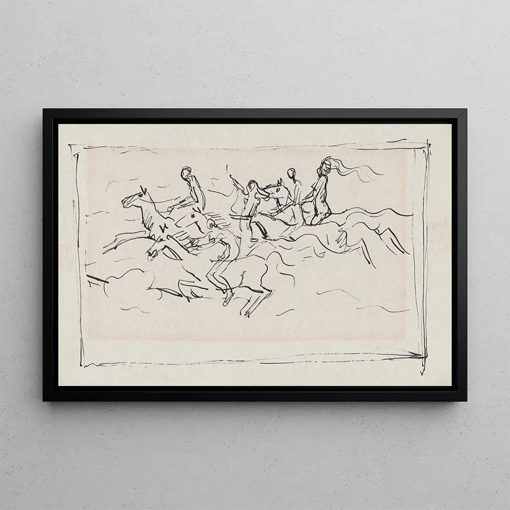 Kunsttrykket "Cavaliers" er et dekorativt stykke, der vil berige ethvert rum, uanset om det er en stue, et kontor eller et soveværelse. Dets trykkvalitet sikrer en bemærkelsesværdig trofasthed over for detaljerne i det originale værk, hvilket gør det muligt at værdsætte hver nuance af farve og hver bevægelse. Ved at integrere dette billede i din indretning tilføjer du et strejf af elegance og autenticitet til dit hjem. Dets æstetiske tiltrækningskraft og evne til at fremkalde følelser gør det til et ideelt valg for dem, der ønsker at skabe en varm og inspirerende atmosfære.