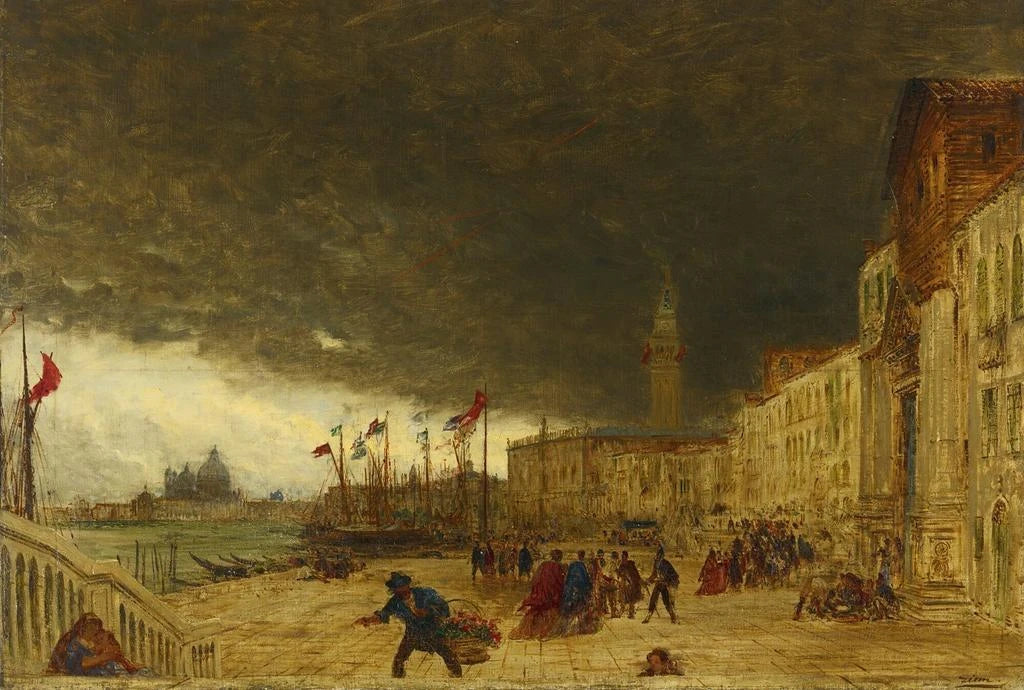 Félix Ziem, fransk maler fra det 19. århundrede, er berømt for sine maritime og bybilleder, især af Venedig. Påvirket af den romantiske bevægelse formåede han at fange den flygtige skønhed i de scener, han observerede under sine rejser. Ziem udviklede en unik stil, der kombinerede realisme og impressionisme, hvilket gjorde ham bemærket i kunstverdenen. "Riva degli Schiavoni" er et perfekt eksempel på hans talent, der illustrerer hans kærlighed til lys og refleksioner, samtidig med at det vidner om Venedigs betydning i hans værk.