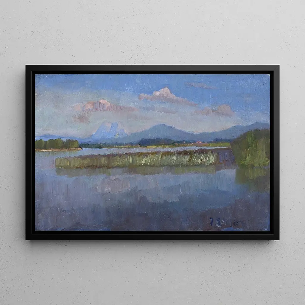Rive du Chiemsee : et landskab præget af ro "Rive du Chiemsee", kunsttryk af Julius Exter, fremkalder en beroligende ro gennem sine nuancer af blå og grøn. Maleriet fanger skønheden af en sø omgivet af majestætiske bjerge, hvor lyset reflekteres blidt på vandet. Den harmoniske komposition og den subtile brug af farver skaber en drømmeagtig atmosfære, der inviterer til eftertanke. Exter, med sin beherskelse af lys og skygge, formår at formidle en følelse af fred og flugt, hvilket gør dette kunsttryk til et ægte fristed af ro. Julius Exter : en mester i det moderne landskab Julius Exter, tysk maler fra begyndelsen af det 20. århundrede, er kendt for sine fortryllende landskaber, der forener impressionisme og ekspressionisme. Påvirket af den omkringliggende natur og de store mestre af landskabet, har han udviklet en unik stil, kendetegnet ved levende farver og en personlig berøring. Exter har viet en stor del af sin karriere til at skildre landskaber fra sin region, især Chiemsee, en ikonisk sø i Bayern. Hans kunstværk vidner om en dyb forbindelse med naturen og en søgen efter skønhed, hvilket gør ham til en vigtig figur i den moderne landskabskunst. En dekorativ kunsttryk med mange fordele At vælge et kunsttryk af "Rive du Chiemsee" til dit opholdsrum er en klog beslutning. Dette kunsttryk vil tilføre en fredelig og inspirerende atmosfære til dit stue, kontor eller soveværelse. Kvaliteten af kunsttrykket sikrer en trofast gengivelse af nuancerne og detaljerne i det originale værk, hvilket giver mulighed for at nyde landskabets skønhed. Med sin æstetiske tiltrækningskraft bliver dette lærred et centralt dekorativt element, der vækker beundring og skaber en rolig stemning, der er ideel til afslapning og refleksion.