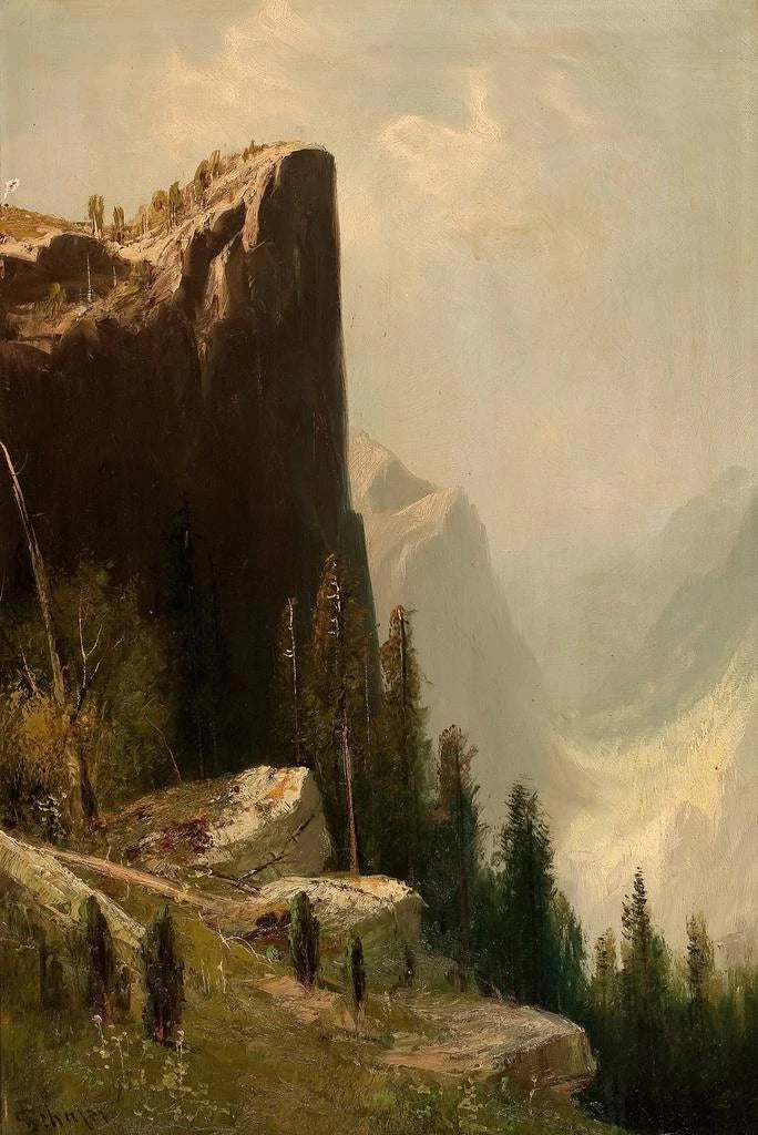 Frederick Ferdinand Schafer, aktiv i det 19. århundrede, er en kunstner hvis kunstværk er en del af den amerikanske landskabsbevægelse. Påvirket af de store mestre inden for landskabsmaleri, har han formået at fange essensen af de amerikanske landskaber med en unik følsomhed. Hans arbejde afspejler naturens betydning i den amerikanske kultur på den tid, hvor landet åbnede sig for udforskning og værdsættelse af sine vidtstrakte områder. Schafer har ofte malet scener inspireret af sine rejser, og "Rocher de guet dans la vallée de Yosemite" er et perfekt eksempel på hans engagement i at skildre den naturlige skønhed i USA.
