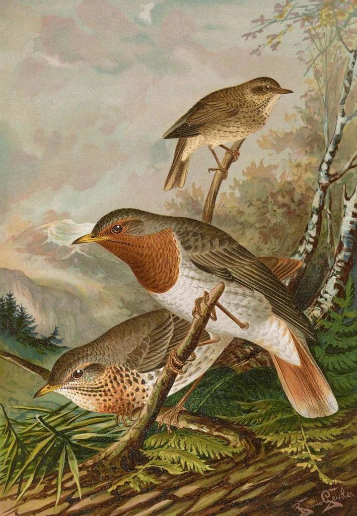 Maleri Turdus ruficollis - Johann Friedrich Naumann