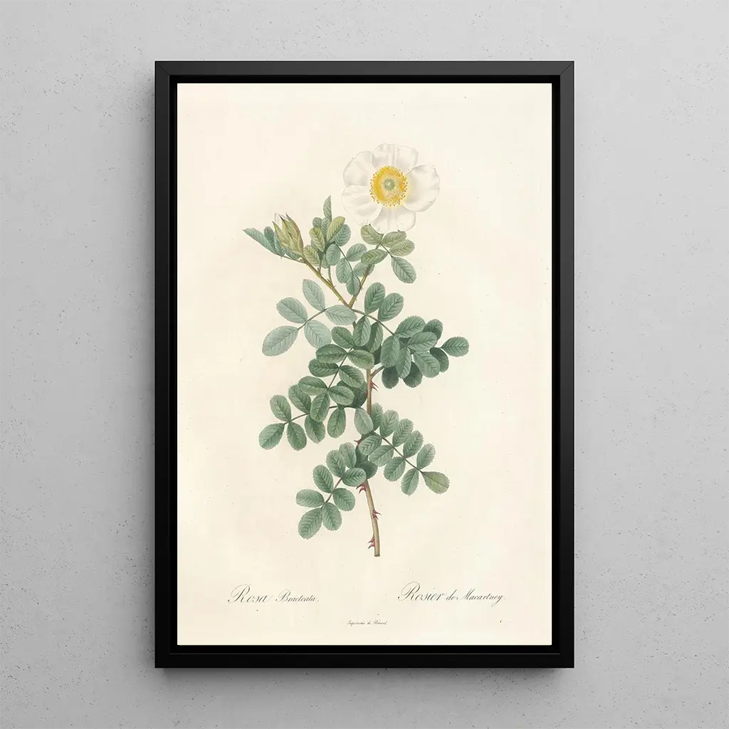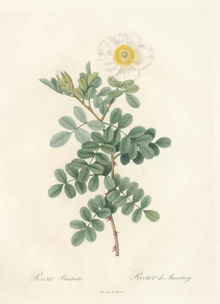 Pierre Joseph Redouté, kaldet "Raphaël af blomster", er en ikonisk figur inden for botanisk maleri fra det 18. århundrede. Født i 1759 i Belgien, bosatte han sig i Paris, hvor han blev den officielle blomstermaler ved hoffet. Påvirket af neoklassiske og romantiske strømninger, specialiserede Redouté sig i at repræsentere planter og blomster med videnskabelig præcision. Hans værker, herunder Rosa Bracteata, vidner om hans enestående talent og sans for detaljer. Han formåede at forene kunst og videnskab, hvilket bidrog til populariseringen af botaniske studier i hans tid, samtidig med at han efterlader en varig arv inden for blomsterkunst.