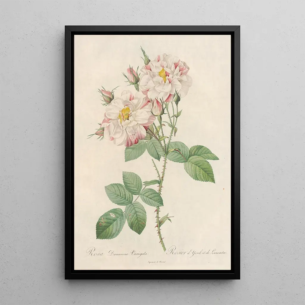 Maleri Rosa Damascena Variegata - Pierre Joseph Redouté | Kunsttryk