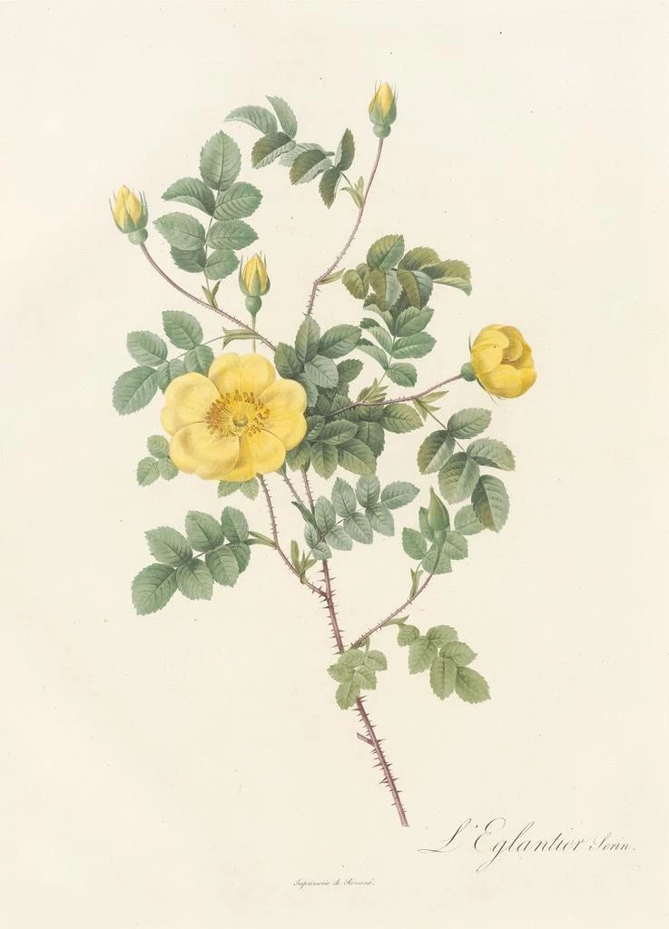 Maleri Rosa Eglanteria Luteola - Pierre Joseph Redouté | Kunsttryk