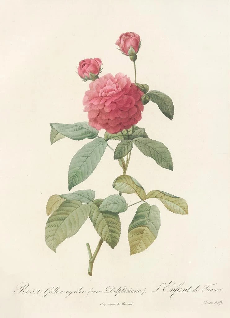 Maleri Rosa Gallica Agatha Var Delphiniana - Pierre Joseph Redouté | Kunsttryk