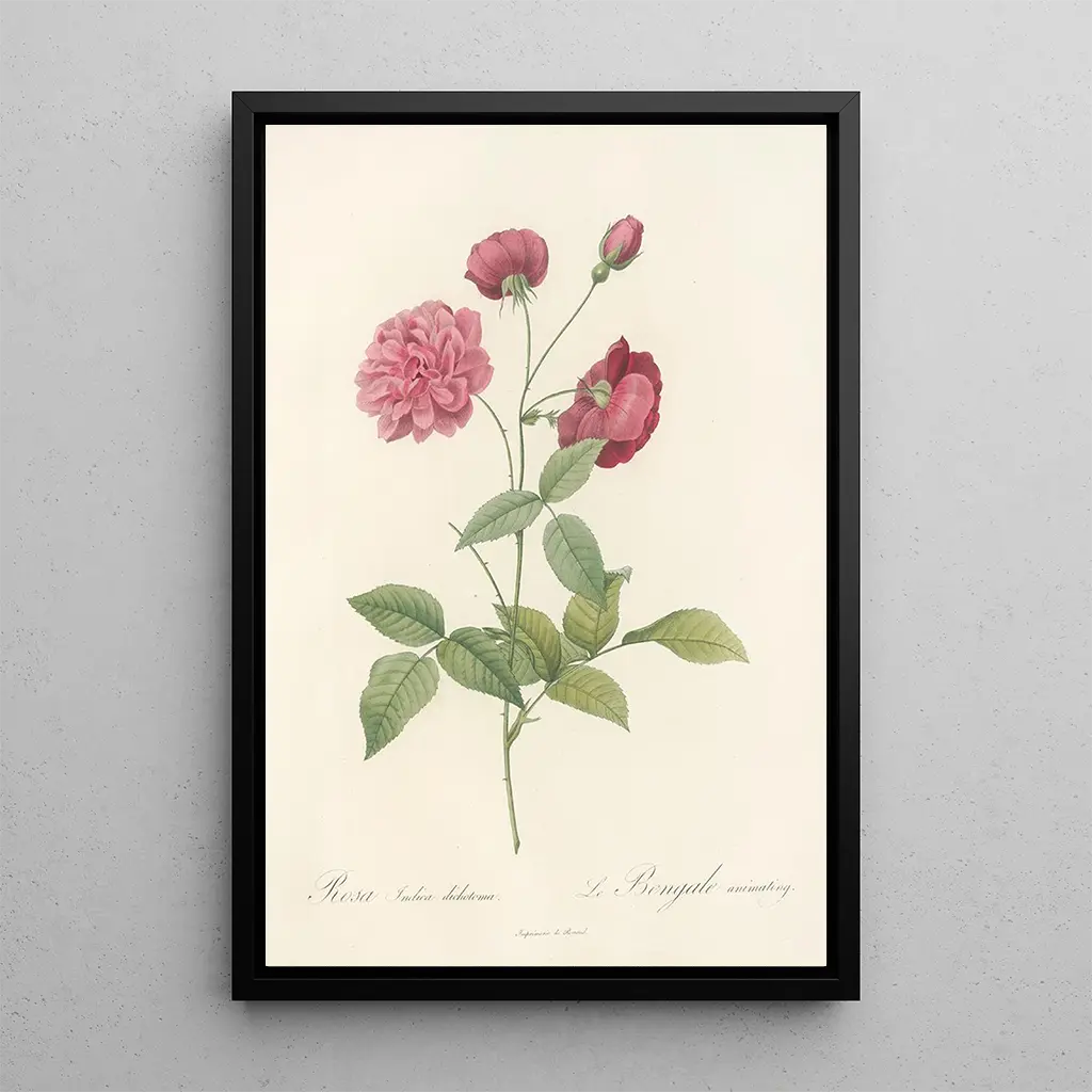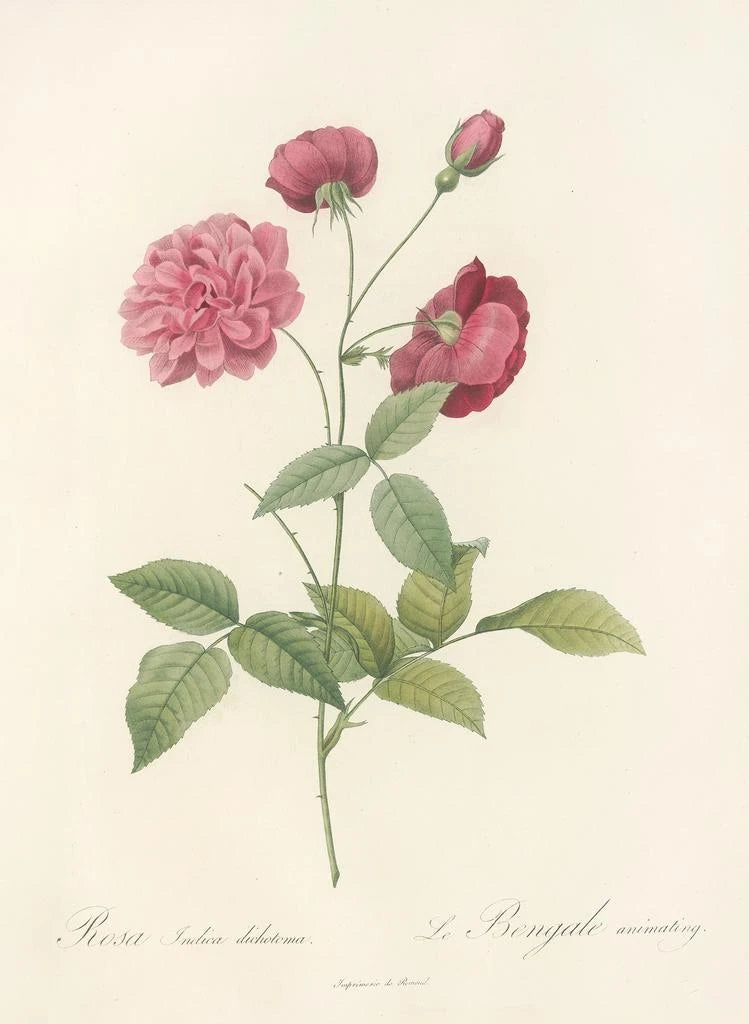 Pierre Joseph Redouté, kaldet "Blomsternes Raphael", markerede sin tid i det 18. århundrede med sin unikke tilgang til botanik. Oprindeligt fra Belgien, formåede han at forene kunst og videnskab og blev den officielle maler for blomster ved Marie-Antoinettes hof. Påvirket af neoklassiske strømninger, tilføjede han en romantisk nuance til sine værker. Hans arbejde bidrog ikke kun til dokumentationen af blomsterarter, men hævede også blomsterkunsten til et hidtil uset niveau. Kunsttrykket af Rosa Indica Dichotoma er et perfekt eksempel på hans talent og vidner om naturens betydning i kunstens verden i hans tid.