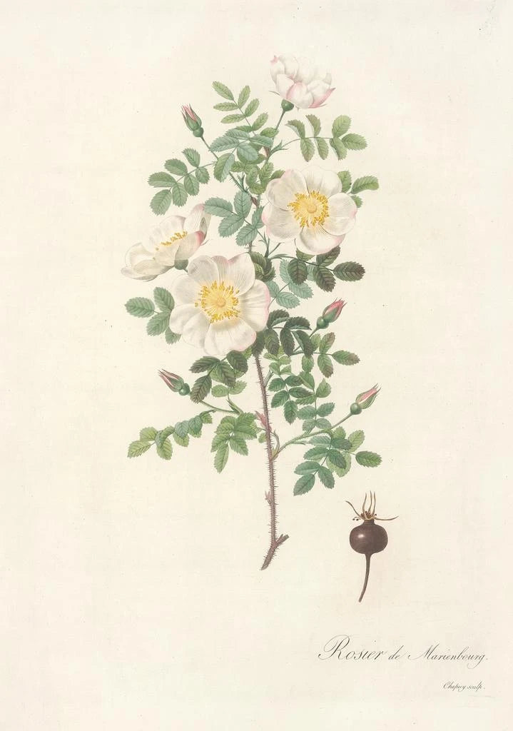 Kunsttryk Rosa Pimpinellifolia Mariaeburgensis - Pierre Joseph Redouté | Kunsttryk