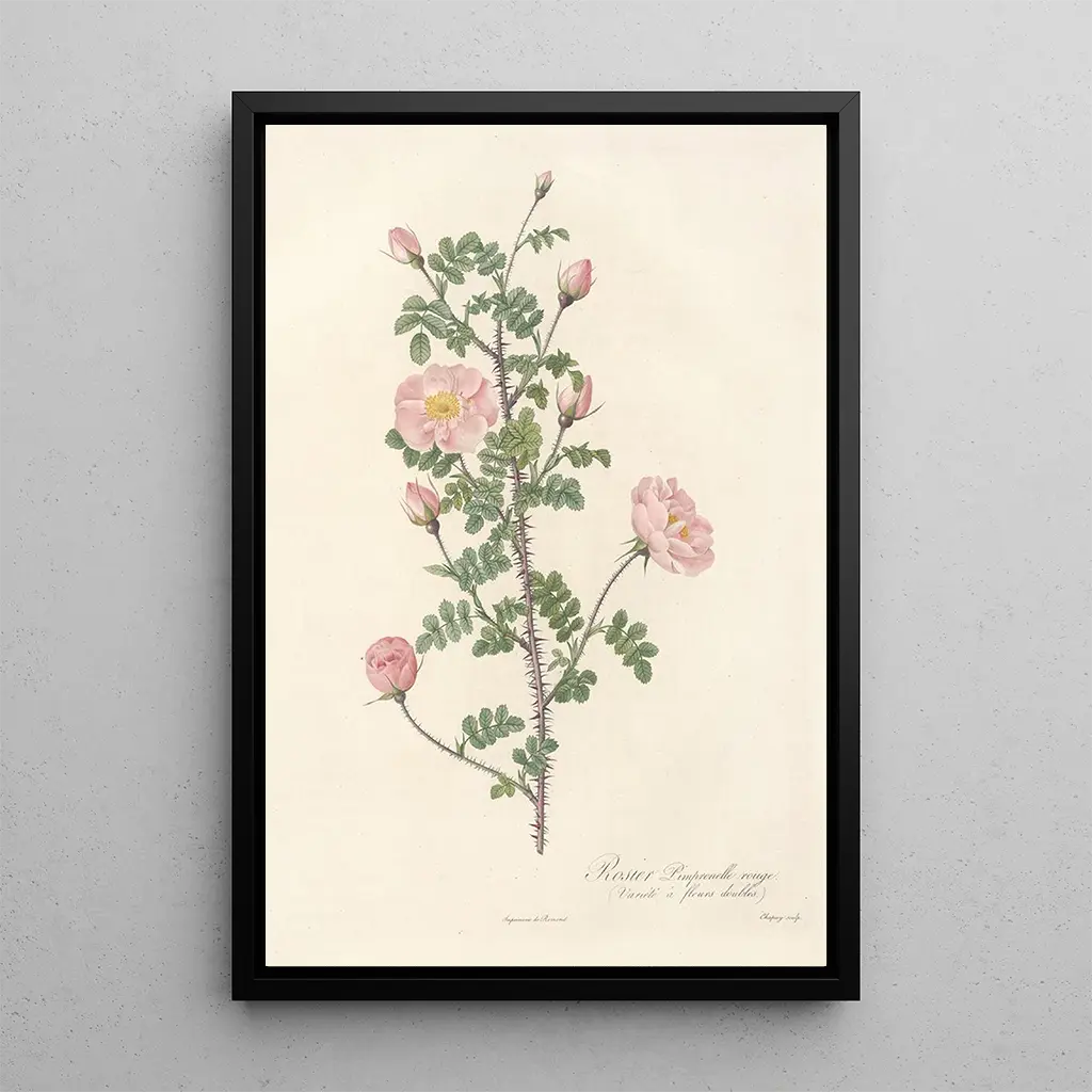 Maleri Rosa Pimpinellifolia Rubra - Pierre Joseph Redouté | Kunsttryk Source: Tableau Rosa Pimpinellifolia Rubra - Pierre Joseph Redouté | Reproduction