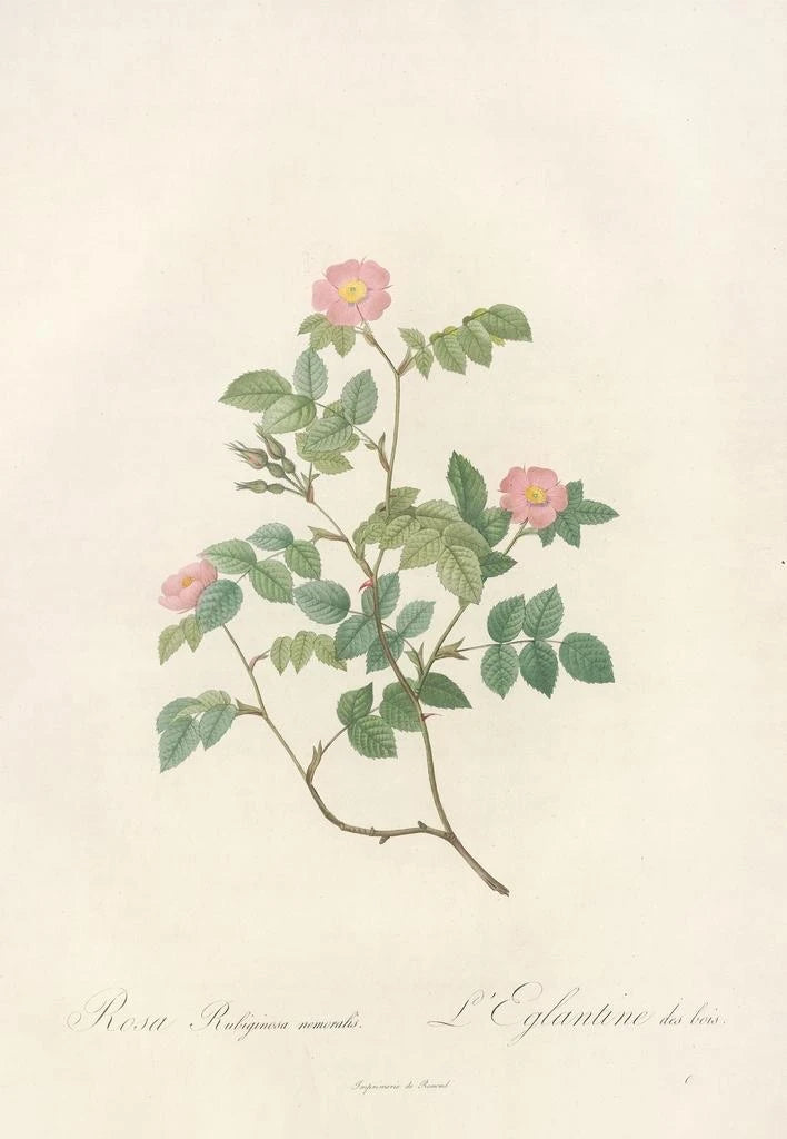 Maleri Rosa Rubiginosa Nemoralis - Pierre Joseph Redouté | Kunsttryk