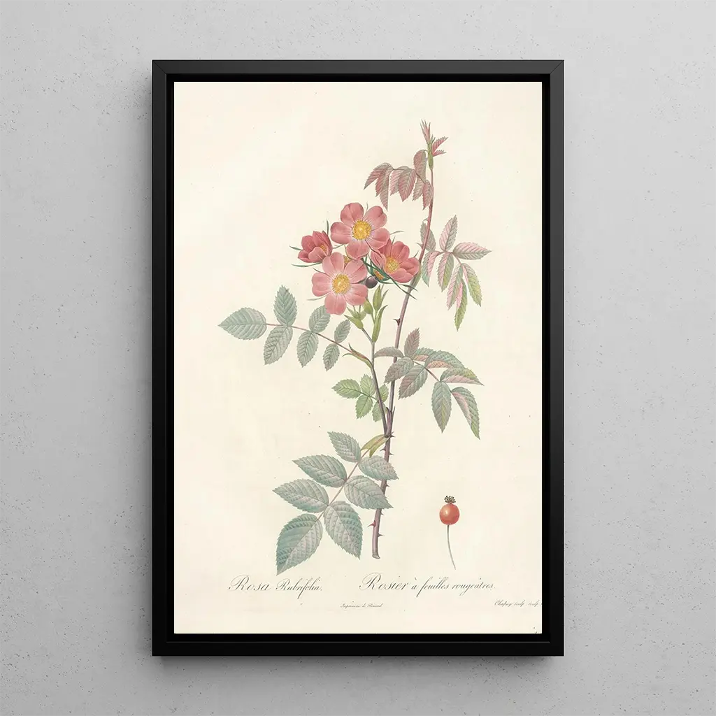 Den kunsttryk af Rosa Rubrifolia, et fascinerende værk af Pierre Joseph Redouté, tager os med til hjertet af en frodig have. Dette lærred, med sine livlige nuancer af rød og grøn, fremkalder en følelse af liv og dynamik. De omhyggelige detaljer i blade og blomster afslører Reds unikke talent for at fange den naturlige skønhed. Atmosfæren, der udspringer af dette værk, er både glædesfyldt og beroligende, og inviterer betragteren til at forundres over floraens pragt. Hvert penselstrøg synes at ånde kunstnerens passion for botanik.