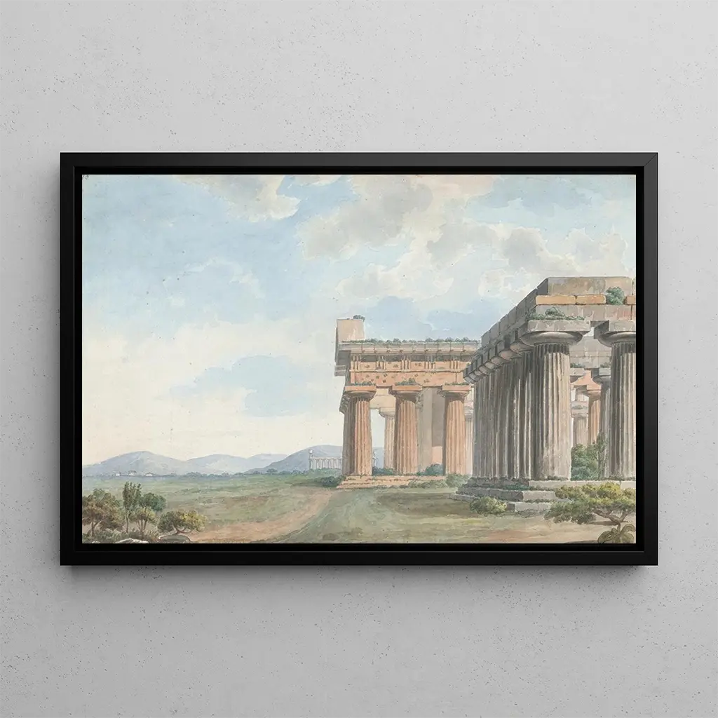 Kunstneren bag "Ruinerne af templet i Paestum", Templet Ruiner ved Paestum, er en del af en tradition, der hylder den klassiske arkitektur og dens indflydelse på vestlig kunst. Ruinerne i Paestum, et arkæologisk sted i Italien, har fascineret mange kunstnere og arkitekter gennem århundreder. Dette maleri vidner om vigtigheden af oldtiden i udviklingen af æstetisk kunst, samtidig med at det afspejler den stigende interesse for historiske steder i det 19. århundrede. Kunstneren, gennem sin tilgang, hylder skønheden og storheden af disse rester, samtidig med at de integreres i en moderne kontekst.