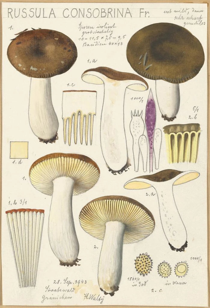 Hans Baldung, også kendt som Hans Baldung Grien, er en af de ikoniske skikkelser i den tyske renæssance. Aktiv i begyndelsen af det 16. århundrede, blev han påvirket af Dürers værker og formåede at udvikle en unik stil, der kombinerer realisme med fantastiske elementer. Baldung er især kendt for sine fremstillinger af naturen og mytologiske temaer, som afslører en særlig følsomhed over for den naturlige verden. Hans evne til at fange den flygtige skønhed af svampe, som i Russula consobrina, vidner om hans dygtighed til at forene kunst og videnskabelig observation, hvilket gør ham til en uundværlig kunstner i sin tid.