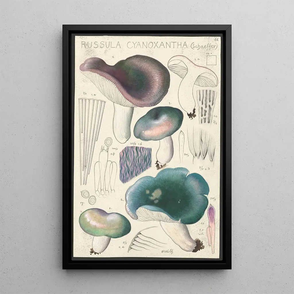 Kunsttrykket af Russula cyanoxantha Schaeffer er et dekorativt stykke, der passer perfekt ind i forskellige rum, uanset om det er i en stue, et kontor eller et soveværelse. Dets trykkvalitet og trofasthed mod de originale farver gør det til et ideelt valg for dem, der ønsker at tilføre elegance og natur til deres indretning. Med sin ubestridelige æstetiske appel vil dette maleri uden tvivl vække samtaler og tilføje en kunstnerisk dimension til din indretning. Forkæl dig selv med dette lærred for at berige dit miljø med et værk, der fejrer naturens skønhed.