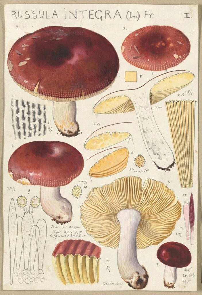 I dette fængslende værk tager Hans Baldung os med til hjertet af en verden, hvor naturen blomstrer i al sin pragt. Kunsttrykket Russula integra skiller sig ud med sine livlige farver og detaljerede elementer, der fremkalder en atmosfære, der er både fredelig og dynamisk. Nuancerne af grønt og rødt blandes harmonisk, hvilket skaber en slående kontrast, der fanger øjet. Baldungs teknik, der kombinerer realisme og stilisering, giver liv til denne svampefremstilling og inviterer betragteren til at udforske floraens finurligheder. Hvert element i lærredet synes at vibrere af energi, hvilket vidner om kunstnerens kærlighed til naturen.