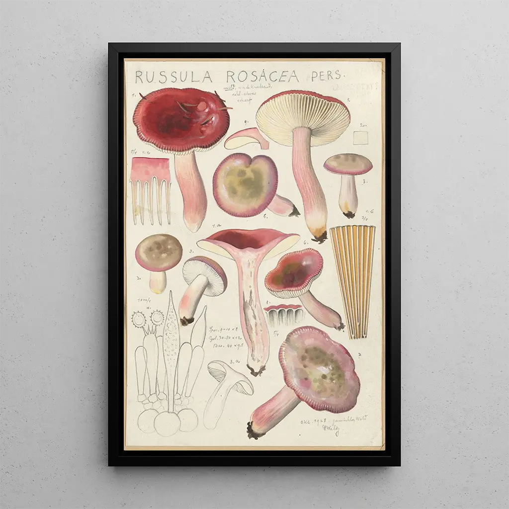 Valget af kunsttrykket af Russula rosacea er at vælge et dekorativt stykke, der vil tilføre elegance til dit hjem. Uanset om det er i en stue, et kontor eller et soveværelse, vil dette maleri appellere med sin kvalitet og trofasthed over for det originale værk. Det æstetiske tiltrækningskraft ved dette lærred ligger i dets evne til at vække sanserne og vække nysgerrighed. De delikate nuancer og de organiske former gør det til et ideelt dekorativt element, der kan skabe en varm og indbydende atmosfære. Ved at integrere dette kunsttryk i dit rum inviterer du naturens skønhed til at blomstre i dit hjem.
