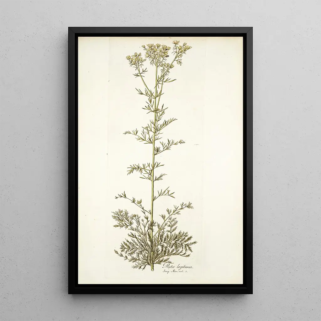 Kunsttrykket af Ruta legitima er et dekorativt stykke, der vil pryde dit hjem og samtidig tilføre et strejf af natur. Uanset om det er i stuen, på et kontor eller i et soveværelse, integreres dette billede harmonisk i forskellige dekorationsstile. Dets trykkvalitet og trofasthed mod det originale værk sikrer en fængslende visuel fremstilling. Ved at vælge dette lærred går du efter en dekoration, der både fremkalder skønheden i botanikken og historien om medicinske planter. Det er et værk, der inviterer til eftertanke og ro, og som beriger dit opholdsrum.