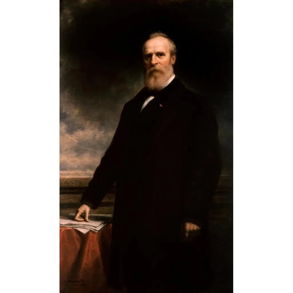 Kunsttrykket af Rutherford Birchard Hayes, udført af Daniel Huntington, skildrer en mand med et beslutsomt blik, symbol på en æra præget af genopbygning og forandring. De bløde nuancer og de fine skygger understreger Hayes' værdighed, mens Huntingtons teknik fremhæver detaljerne i hans jakkesæt og ansigt. Atmosfæren, der udspringer af dette maleri, er både seriøs og inspirerende, og inviterer beskueren til at reflektere over de udfordringer, Hayes stod overfor under sin præsidentskab. Hvert penselstrøg synes at fortælle en historie, den om en leder engageret i jagten på en samlet nation.