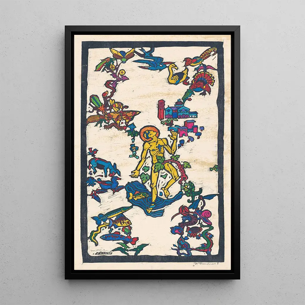 Kunsttrykket af Saint François af Reijer Stolk fremkalder en dyb forbindelse mellem mennesket og naturen. I dette værk skaber de jordnære farver og bløde nuancer en varm og beroligende stemning. Helgenens positur, præget af sindsro, inviterer til meditation og refleksion. De fine detaljer, såsom blade og dyr, der omgiver ham, styrker denne åndelige og naturlige forbindelse. Stolk's teknik, der kombinerer realisme med impressionistiske strejf, giver liv til denne scene, hvilket gør det muligt for betragteren at føle den indre fred, som Saint François symboliserer.