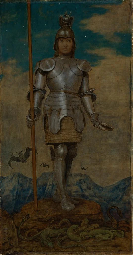 Hans Thoma, en ikonisk skikkelse inden for tysk symbolisme, formåede at forene tradition og modernitet gennem hele sin karriere. Født i 1839, blev han påvirket af romantikken og realismen, og integrerede folkelige elementer i sine værker. Thoma var også en passioneret fortaler for folkekunst, og søgte at repræsentere de værdier og tro, der var gældende i hans tid. Hans skabelsesperiode, der strækker sig fra slutningen af 1800-tallet til begyndelsen af 1900-tallet, er præget af en søgen efter ægthed og spiritualitet. "Saint Georges ridder" illustrerer netop denne søgen, hvilket gør kunstneren til en uundværlig del af sin tid.