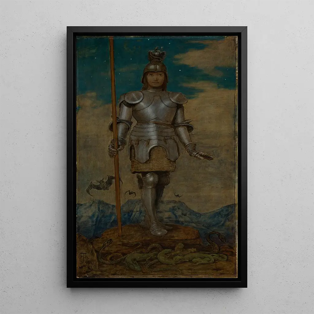 Reproduktionen af "Saint Georges ridder" er et dekorativt stykke, der vil berige dit hjem, uanset om det er i en stue, et kontor eller et soveværelse. Dets trykkvalitet sikrer en bemærkelsesværdig trofasthed over for detaljerne og farverne i det originale værk, hvilket tilføjer et strejf af elegance og kultur til dit rum. Det æstetiske tiltrækningskraft ved dette lærred ligger i dets fortællende kraft, der fanger øjet og sindet hos besøgende. Ved at vælge denne kunsttryk, vælger du et billede, der ikke blot forbedrer din indretning, men også vækker universelle temaer om mod og legende.