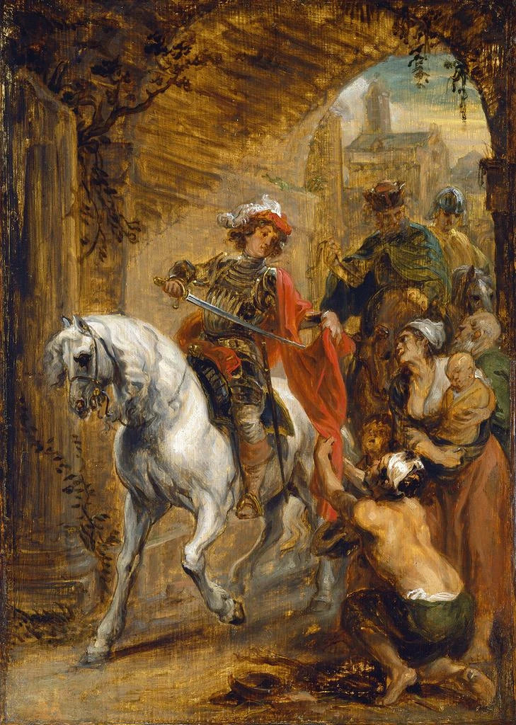 Saint Martin partageant son manteau : un acte de générosité immortalisé